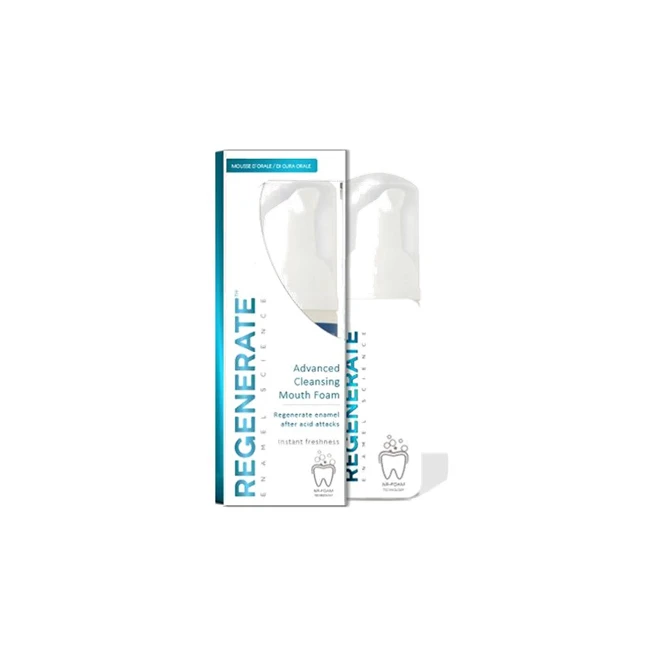 Indicato per la protezione quotidiana dello smalto dentale e la prevenzione dei danni causati dagli acidi, Regenerate è un collutorio mousse che agisce rapidamente e in profondità, aiutando a prevenire carie, sensibilità, ingiallimento e trasparenza dei denti. Con un formato pratico e senza alcool, è ideale sia per l'uso domestico che fuori casa. L'efficacia è stata dimostrata in studi clinici e in vitro.