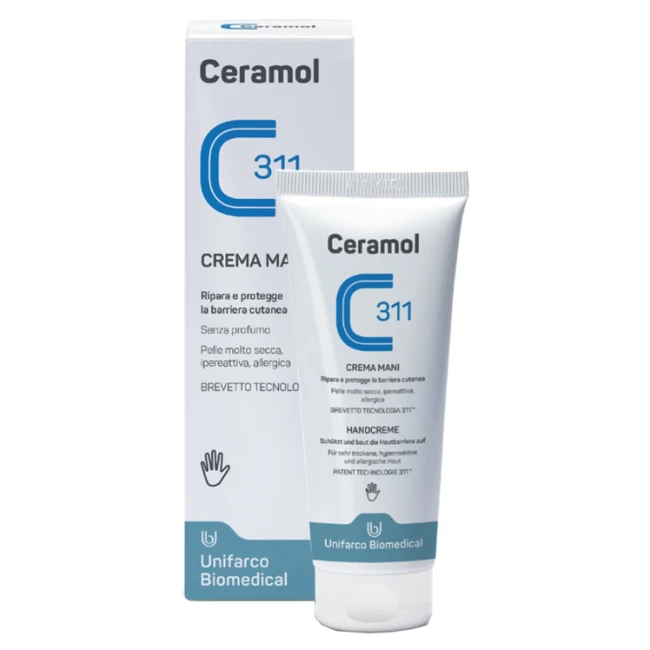Ceramol 311 Crema Mani è indicata per mani molto secche, screpolate, soggette ad arrossamenti o alterazioni della barriera cutanea causate da agenti esterni come detergenti aggressivi, freddo, lavoro manuale o uso frequente di disinfettanti.