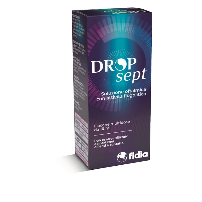 DROPsept è una soluzione oftalmica, coadiuvante per la protezione e la riparazione dell’epitelio corneale e congiuntivale, con attività flogolitica. È indicato, per adulti e bambini, nel trattamento di sintomi quali bruciore, prurito, fotofobia, sensazione di corpo estraneo ed arrossamento oculare, associati a stati infiammatori in atto della superficie oculare e degli annessi come le congiuntiviti, le cheratiti le blefariti, le dacriocistiti, le meibomiti e la sindrome da discomfort oculare e del dry eye.