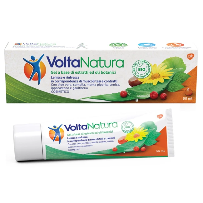 VoltaNatura è una combinazione di 6 ingredienti botanici attentamente selezionati. La formulazione combina gli estratti di arnica, ippocastano e centella, tradizionalmente utilizzati per la loro azione lenitiva, con gli oli di gaultheria e menta piperita che sono conosciuti per le loro proprietà rinfrescanti.