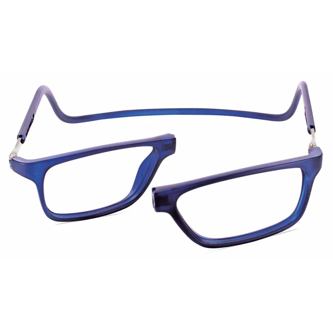 Occhiali da lettura realizzati in materiale iniettato che si preserva nel tempo e sono dotati di un pratico magnete centrale che unisce e chiude sul ponte le due lenti asferiche.