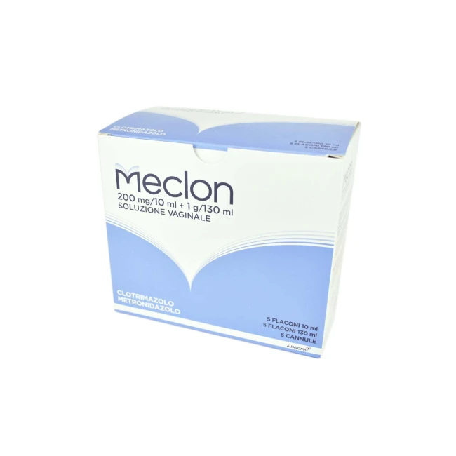 Meclon 200 mg/10 ml + 1 g/130 ml è una soluzione vaginale combinata che contiene clotrimazolo e metronidazolo, indicata per il trattamento delle infezioni dell’apparato genitale femminile, incluse cervico-vaginiti e vulvo-vaginiti da Trichomonas vaginalis, Candida albicans, Gardnerella vaginalis e flora batterica sensibile, utle come coadiuvante nel trattamento locale e può essere impiegata anche dopo terapia sistemica per ridurre il rischio di recidive.