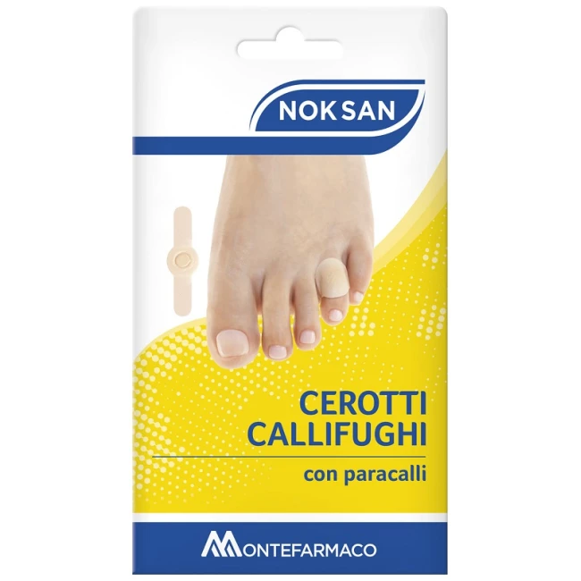I cerotti callifughi Nok San con disco centrale in schiuma di polietilene esercita un’azione protettiva dallo sfregamento delle calzature, prevenendo la formazione di callosità più profonde. L’acido salicilico presente nel centro del cerotto, aiuta ad eliminare la callosità.