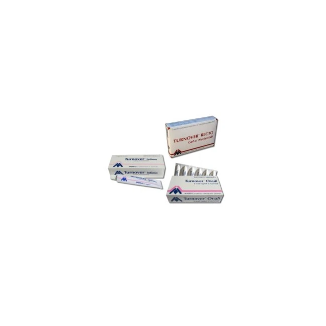 - Turnover Intimo: trattamento protettivo, idratante e lubrificante della mucosa cervico vaginale, della vulva e del perineo. Favorisce i processi riparativi nella secchezza e nelle distrofie, soprattutto quelle legate alla involuzione tessutale post menopausale.- Turnover Ovuli: trattamento protettivo della mucosa cervico vaginale e riequilibrante del pH. Favorisce i fisiologici meccanismi riparativi nelle lesioni patologiche, accidentali o chirurgiche e nelle distrofie.