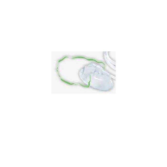 maschera per ossigenoterapia a media concentrazione. Trasparente in plastica morbida con elastico e tubo antischiacciamento.