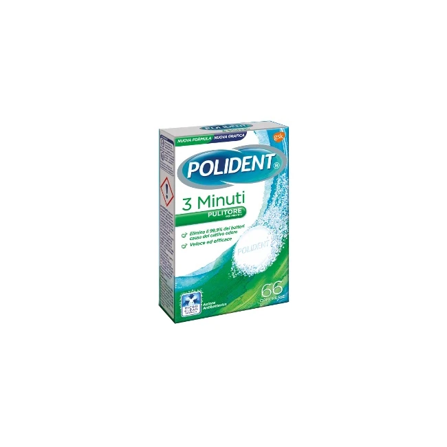 3 Minuti Le compresse di Polident 3 Minuti eliminano la maggior parte dei batteri responsabili dei cattivi odori e contribuiscono a eliminare le macchie resistenti e... Leggi di più