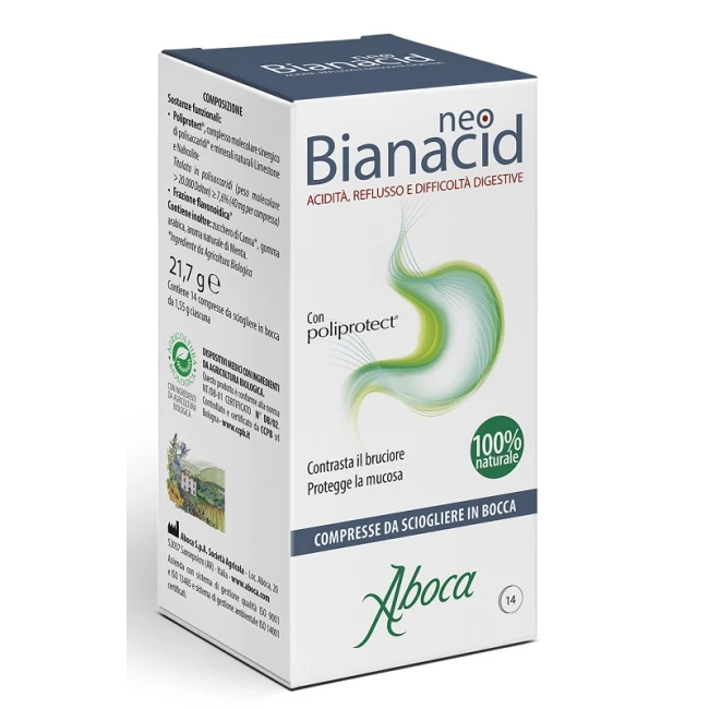 Una compressa da 1,55 g contiene: complesso naturale Poliprotect 528 mg a base di polisaccaridi (frazioni estrattive LPME di malva* e altea*, gel fogliare disidratato di aloe vera* 105 mg) e minerali (limestone e nahcolite 423 mg), frazione flavonoidica estrattiva LPME di camomilla* e liquirizia* 46 mg, zucchero di canna*, gomma arabica, aroma naturale di menta.
