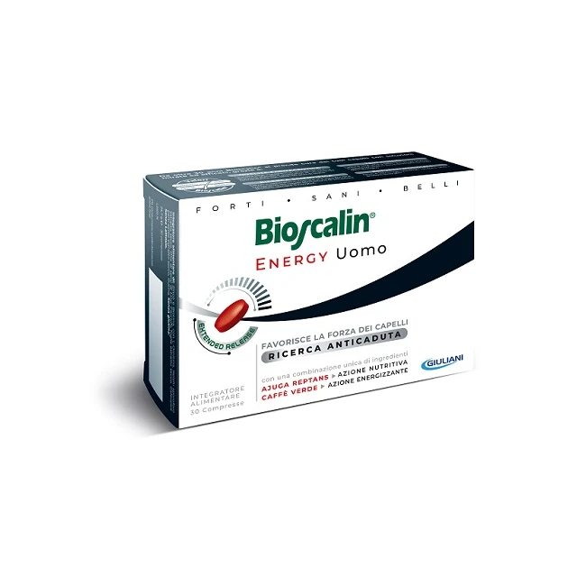 Integratore alimentare utile per i capelli dell'uomo, che associa l'azione combinata dei due esclusivi complessi ATP-3 e AJB-Complex, alla tecnologia brevettata R-Plus, in grado di veicolare in modo ottimale tutti gli attivi e massimizzare l'assorbimento, potenziandone l'azione sul capello.