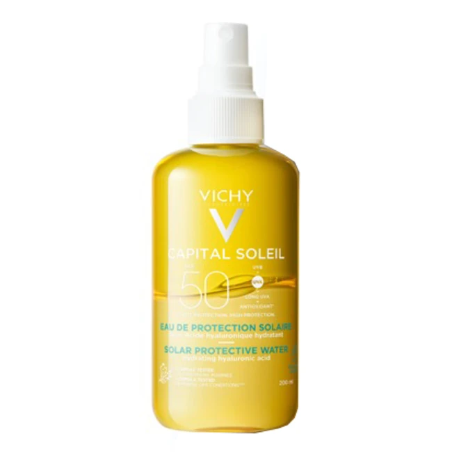 Acqua solare protettiva con acido ialuronico, SPF 50.