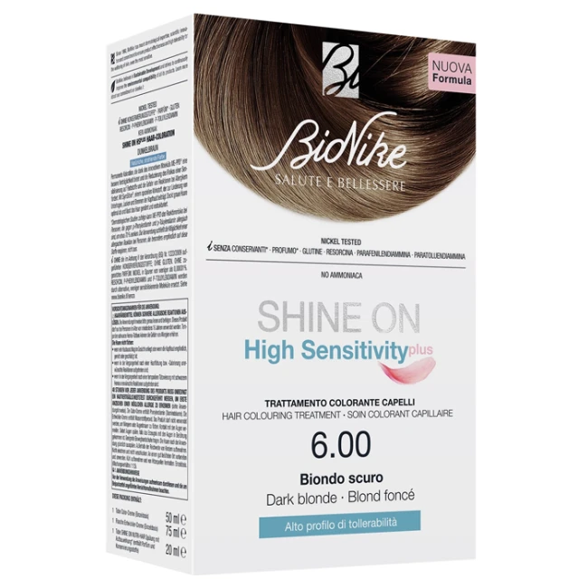Shine on high sensitivity plus biondo scuro 6,00 rivelatore in crema 75 ml + crema colorante 50 ml