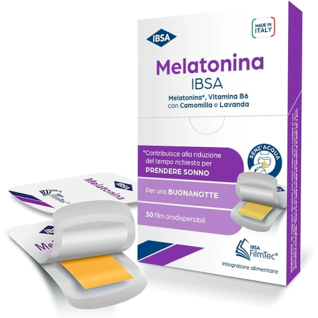 Ibsa Melatonina è un integratore alimentare pratico e rapido da assumere, formulato con melatonina pura per favorire il rilassamento e il sonno naturale. Grazie al formato in film orali orodispersibili, si scioglie direttamente in bocca senza bisogno d’acqua, garantendo un assorbimento veloce. Ideale per contrastare l’insonnia, il jet lag e migliorare la qualità del riposo.