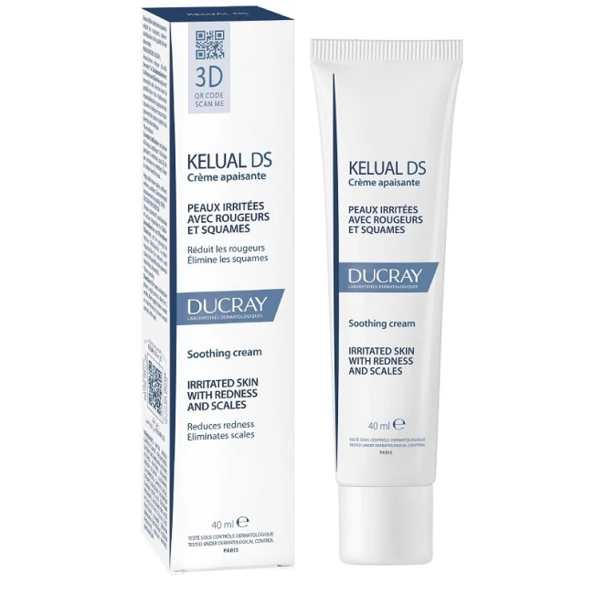 Per pelli soggette a dermatite seborroica, con arrossamenti, prurito e desquamazioni localizzate su viso, ali del naso, sopracciglia e attaccatura dei capelli, Ducray Kelual DS Crema Lenitiva è adatta anche per aree localizzate del corpo interessate da squame e irritazioni.