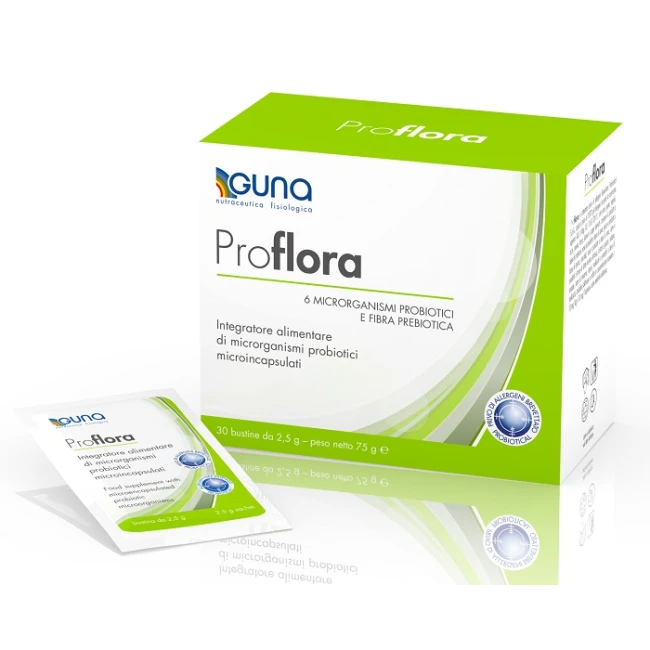 Integratore alimentare a base di 6 diversi microrganismi probiotici in forma microincapsulata e gastroprotetta, associati a fibra prebiotica, utili per l’equilibrio della flora intestinale.