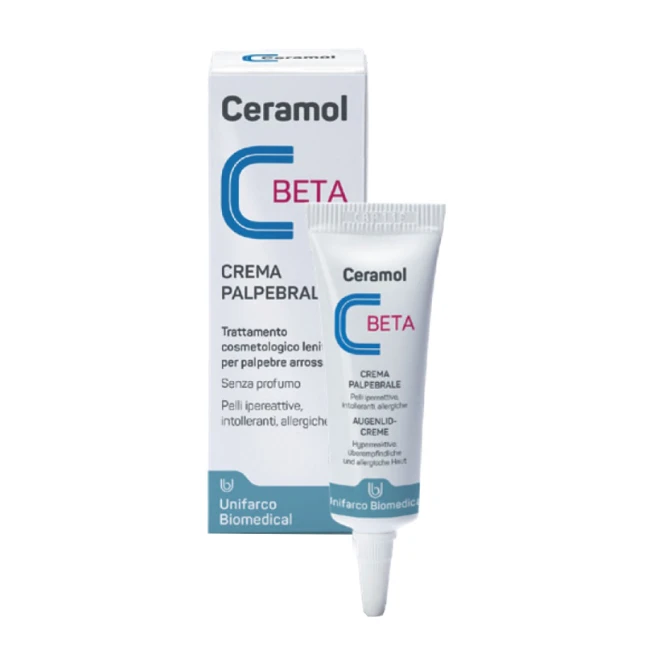 Ceramol Beta Crema Palpebrale è un trattamento cosmetico ad azione lenitiva, formulato per alleviare i sintomi di secchezza, desquamazione, rossore e irritazione della zona perioculare e delle palpebre che grazie alla presenza di attivi idratanti, calmanti e ristrutturanti come ceramidi, burro di karité, bisabololo, acido ialuronico e vitamina E, aiuta a ripristinare la barriera cutanea della delicata area oculare.