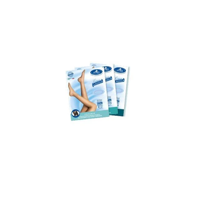 Dispositivo medico CE, classe I.Collant a compressione graduata in multifibra con tassello anteriore estendibile, studiato per sostenere il peso del ventre senza comprimere, seguendo l'evolversi della gravidanza. La particolare mutandina a pantaloncino è rinforzata ed anatomica sulla parte posteriore e sui fianchi.