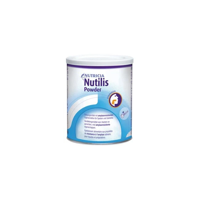 DescrizioneHa una formula brevettata resistente all'amilasi (Nutilis "blocca" l'azione dell'amilasi evitando che il cibo diventi troppo liquido e dunque pericoloso da deglutire per il paziente).