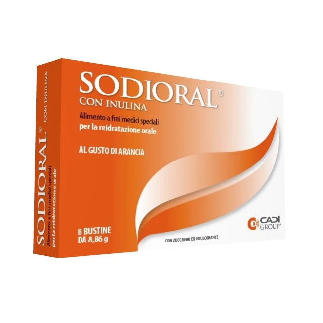 Alimento a fini medici speciali indicato per la gestione dietetica della reidratazione orale in caso di perdite idrosaline (diarrea e/o vomito, ipersudorazione), al gusto di arancia.