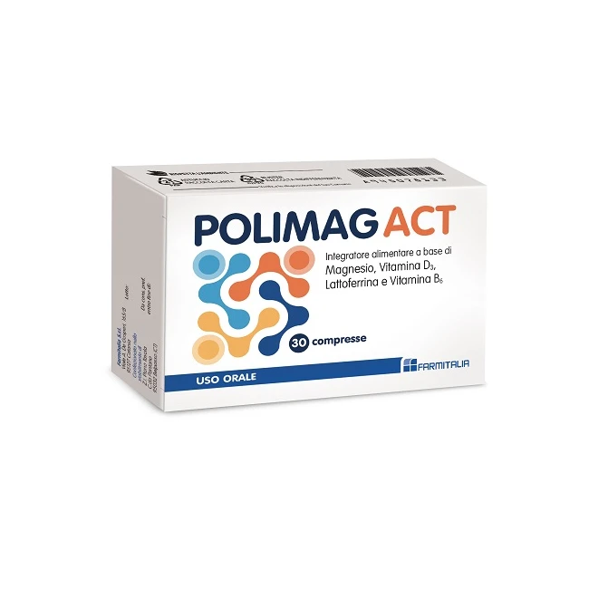 Polimag Actè un integratore a base di vitamine e sali minerali: Magnesio, Vitamina D3, Lattoferrina, Vitamina B6 la cui assunzione riporta i valori di tali nutrienti a quelli fisiologici, riduce il senso di stanchezza e affaticamento, stimola il metabolismo energetico e quello immunitario.