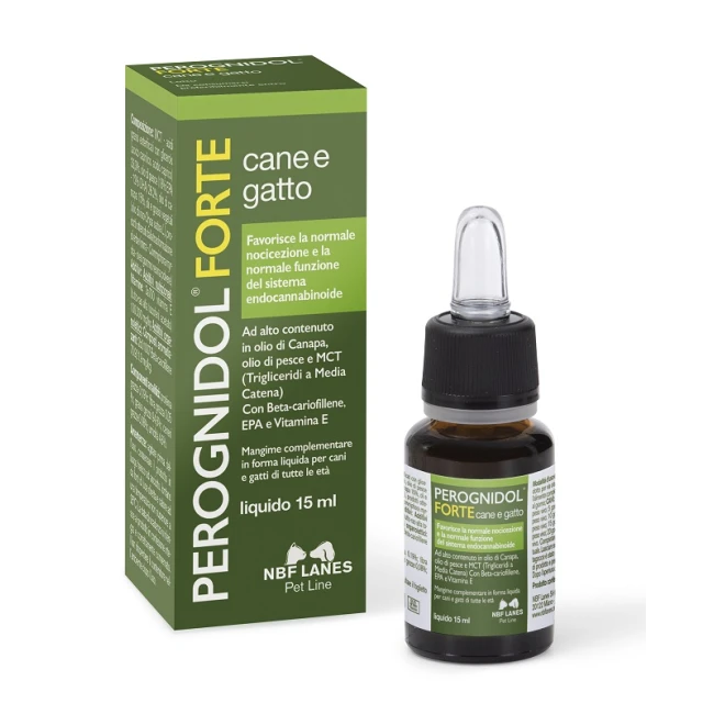 Il fitocomplesso presente nell'alto contenuto in olio di canapa, in combinazione con EPA da olio di pesce e vitamina E, favoriscono la normale funzione nocicettiva nell'animale. Perognidol Forte, che contiene beta-cariofillene, è stato appositamente formulato per favorire la normale funzione del sistema endocannabinoide nell'animale.