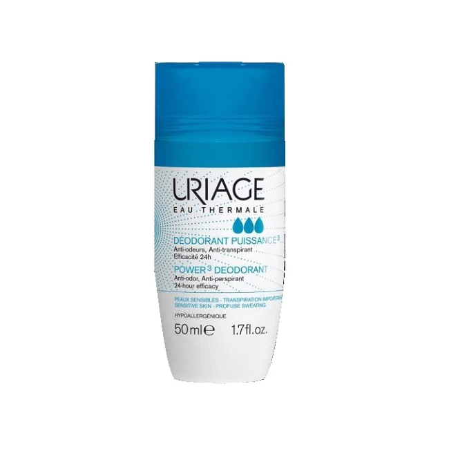 Uriage Eau Thermale Déodorant Puissance 3 è un deodorante roll-on anti-odore e anti-traspirante ad efficacia prolungata fino a 24 ore, specificamente formulato per le pelli sensibili la cui azione regola la traspirazione e contrasta la formazione di cattivi odori senza irritare la pelle.