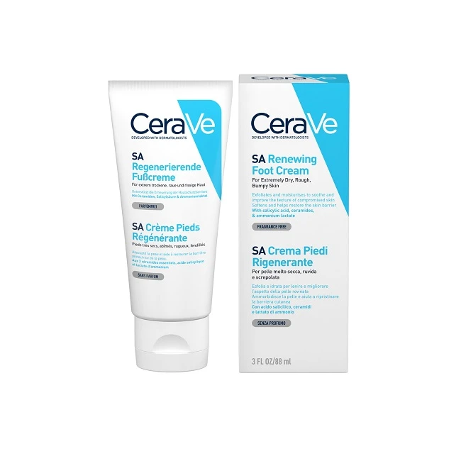 CeraVe SA è un prodotto indicato per il trattamento della pelle molto secca, ruvida, ispessita, screpolata o soggetta a desquamazione, ideale per chi presenta callosità, fessurazioni plantari o una condizione cronica di secchezza cutanea ai piedi.