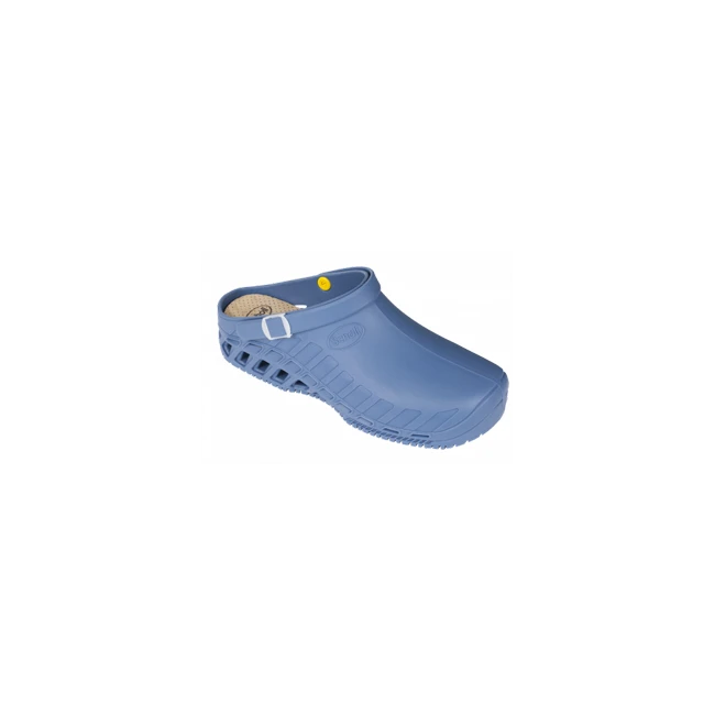 È leggero e flessibile, la tomaia con cinturino è realizzata interamente in TPR. Il modello è autoclavabile, antistatico e resistente allo scivolamento.