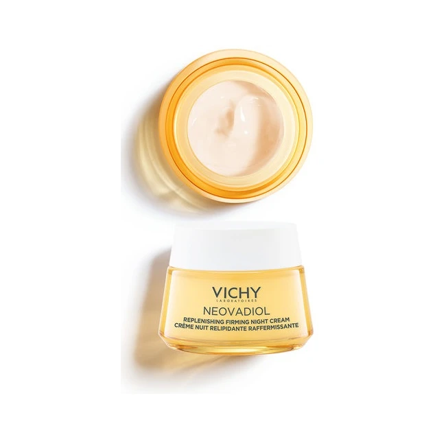 Vichy Neovadiol Crema Notte Rassodante è una crema indicata per le donne che attraversano la fase della menopausa e che presentano segni cutanei come perdita di densità, secchezza, rughe e rilassamento. Nello specifico, agisce di notte, quando la pelle è più ricettiva, per contrastare i segni visibili del tempo e delle variazioni ormonali, restituendo compattezza, luminosità e comfort.