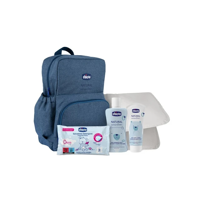 Chicco Natural Sensation Zaino detergente per Corpo&Capelli + Crema Lenitiva + Salviette