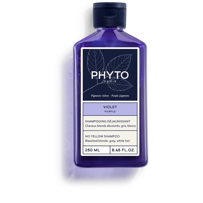 Phyto Violet Shampoo Anti-Giallo Illuminante è lo shampoo professionale ideale per contrastare i fastidiosi riflessi gialli e ramati che spesso compaiono sui capelli biondi, grigi, bianchi o decolorati che grazie alla presenza di pigmenti viola altamente concentrati, neutralizza le tonalità calde indesiderate, donando alla chioma riflessi freddi e luminosi.