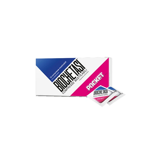 Biochetasi Pocket Digestiv è un integratore formulato con calcio, citrati e vitamine del gruppo B (B1, B2, B6), ideale per supportare la funzione digestiva e il normale metabolismo energetico.