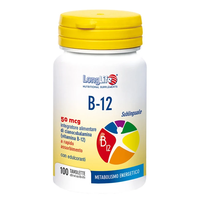 Dettagli Longlife B12 50mcg sublinguale per il metabolismo energetico 100 tavolette