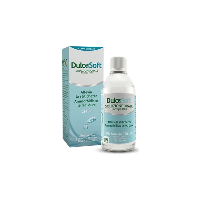 Dulcosoft è una soluzione orale indicata per il trattamento della stitichezza occasionale. A base di macrogol 4000, agisce ammorbidendo le feci e facilitandone l’eliminazione, senza essere assorbito dall’organismo. È delicato sull’intestino, privo di zucchero e adatto anche a bambini sopra i 2 anni, donne in gravidanza e anziani, previo parere medico. Il suo effetto si manifesta generalmente entro 24-72 ore.