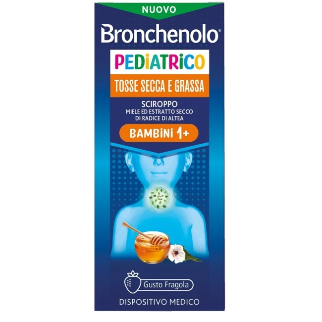 BRONCHENOLO Pediatrico allevia in modo rapido ed efficace qualsiasi tipo di tosse associata al raffreddore, sia secca che grassa.