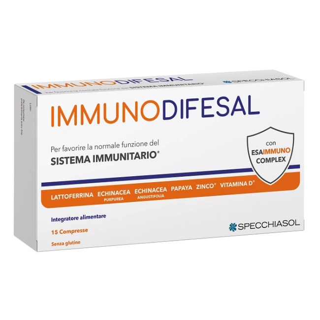 Integratore alimentare con edulcoranti a base di Esaimmuno Complex, un complesso di principi funzionali composto da: lattoferrina, echinacea angustifolia, echinacea purpurea, papaya, zinco e vitamina D. Papaya ed echinacea favoriscono le naturali difese dell’organismo; zinco e vitamina D supportano la normale funzione del sistema immunitario. Completa sinergicamente il complesso di principi funzionali la lattoferrina.