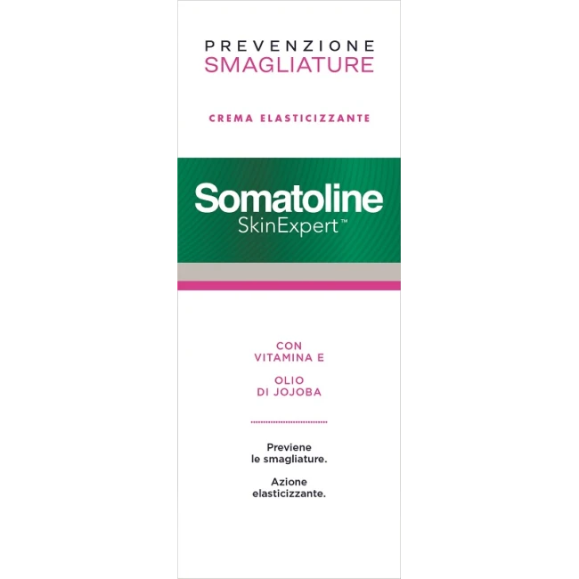 Somatoline Skin Expert Prevenzione Smagliature è una crema corpo elasticizzante pensata per prevenire la formazione delle smagliature e migliorare l'elasticità cutanea con formula che contiene l'86% di ingredienti di origine naturale, tra cui vitamina E, olio di jojoba, estratti di Sophora Japonica e Spirulina.
