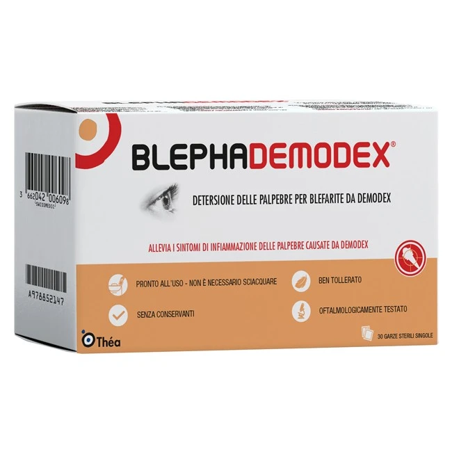 Le garze sterili Théa Farma Blephademodex sono specificamente progettate per l'igiene quotidiana delle palpebre in presenza di infezioni da Demodex.A cosa serve