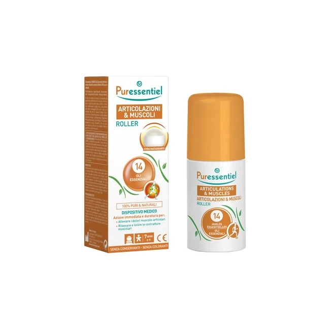 Puressentiel Roller per Articolazioni e Muscoli 75 ml offre un sollievo naturale per dolori muscolari e articolari, facilitando un'efficace applicazione tramite la sfera massaggiante e una selezione di oli essenziali.