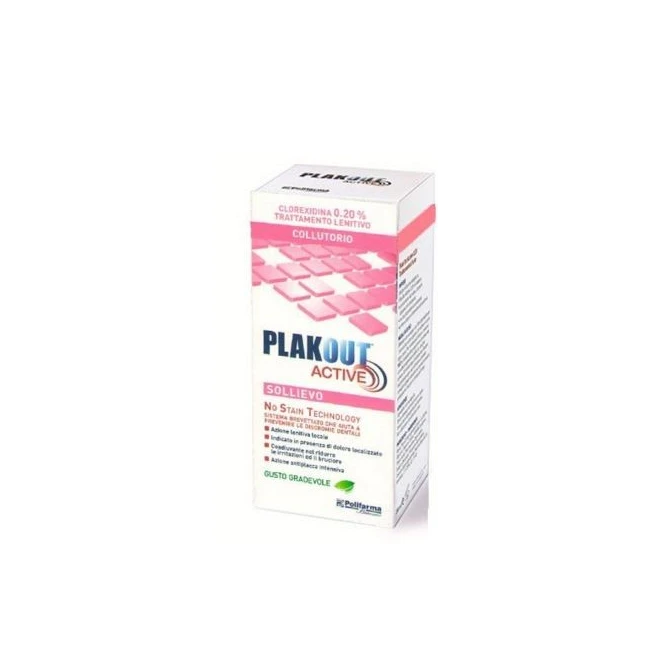 PlakOut Active è formulato con Polidocanolo ed enoxolone, ingredienti noti per le loro proprietà lenitive. Grazie all'innovativo sistema NST (No Stain Technology), questo prodotto riduce l'incidenza delle pigmentazioni dentali associate all'uso della Clorexidina. È privo di alcool, minimizzando il rischio di irritazioni della mucosa orale.Adatto per