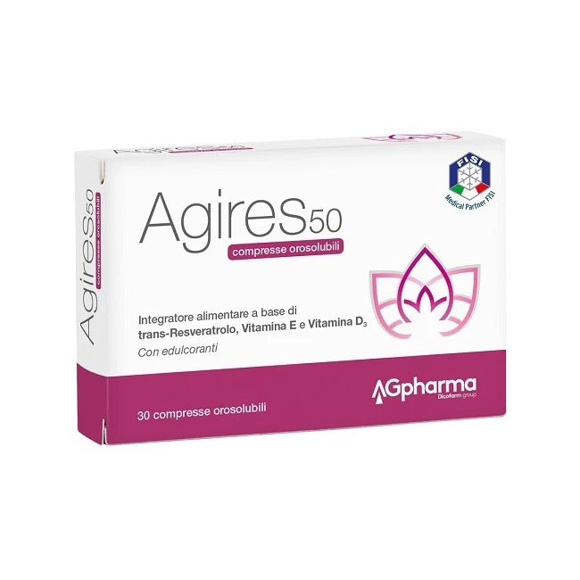 Agpharma Agires 50 Compresse Orosolubili - Integratore con Trans-Resveratrolo, Vitamina E e D3