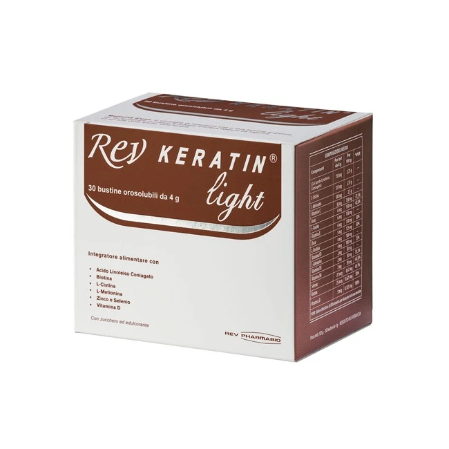 Rev Keratin Light è ideale per chi desidera migliorare la salute dei propri capelli e unghie, soprattutto in presenza di carenze nutrienti o in situazioni che aumentano il fabbisogno di sostanze nutritive.Destinazione d'uso