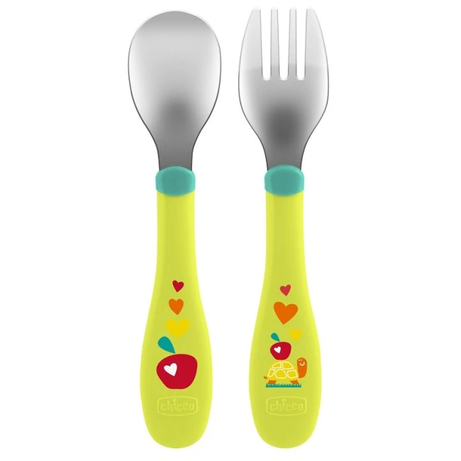 Dettagli Posate Inossidabili Chicco Verde 18m+