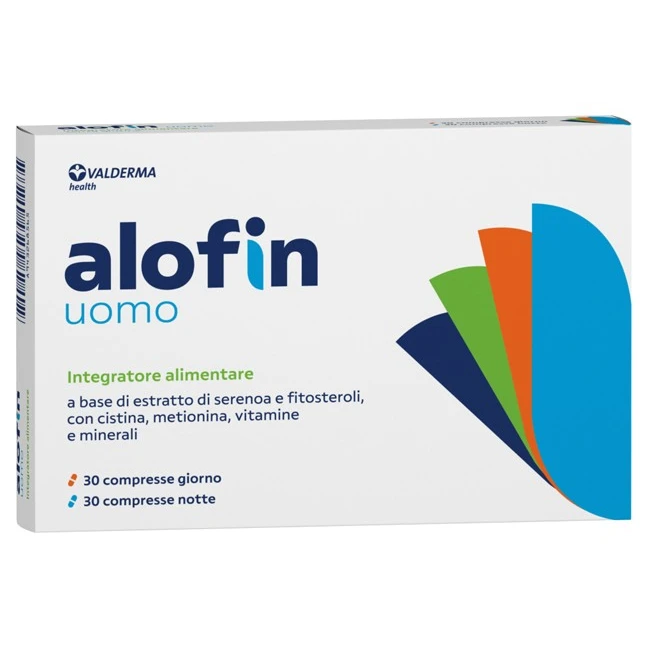 Valderma Alofin Uomo è composto da due tipi di compresse: una per il giorno (arancione) contenente L-metionina e una per la notte (azzurra) con L-cistina. Entrambe le compresse includono estratto di serenoa, fitosteroli, vitamine e minerali, che lavorano sinergicamente per favorire la salute dei capelli.Adatto per