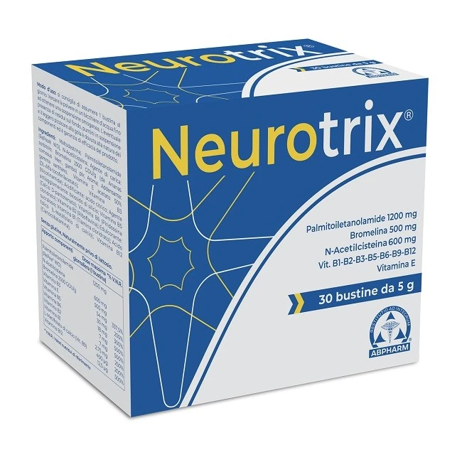 Le bustine di Neurotrix contengono una miscela sinergica di palmitoiletanolamide, N-acetilcisteina e vitamine del gruppo B. È privo di glutine e naturalmente senza lattosio, rendendolo adatto a diverse esigenze alimentari.Adatto per