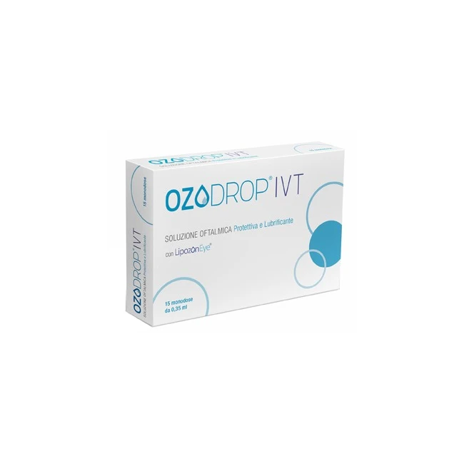OZODROP IVT è una soluzione oftalmica protettiva, lubrificante, idratante e lenitiva, a base di irpomellosa, liposomi ed olio vegetale ozonizzato, utile: