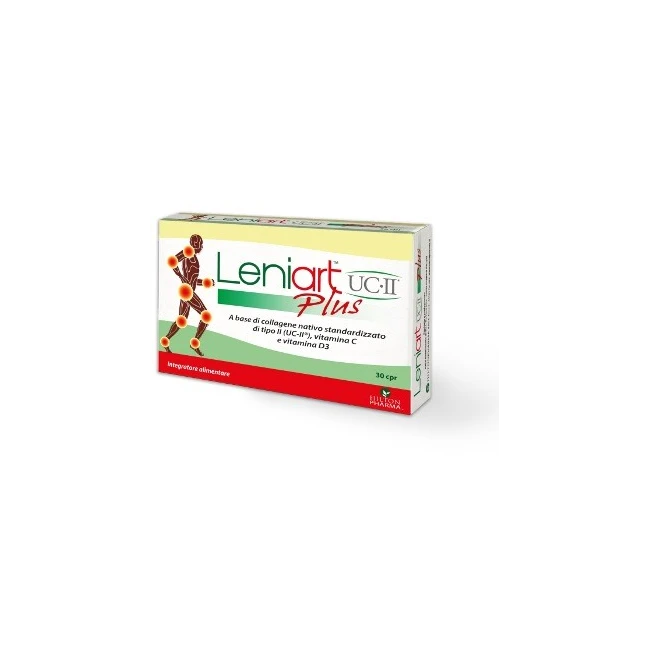 Feli Pharma Leniart UC-II Plus è un integratore alimentare a base di collagene nativo di tipo II standardizzato (UC-II), arricchito con vitamina C e vitamina D3. Grazie alla sua formula innovativa, supporta la salute delle cartilagini e contribuisce al mantenimento di ossa normali.