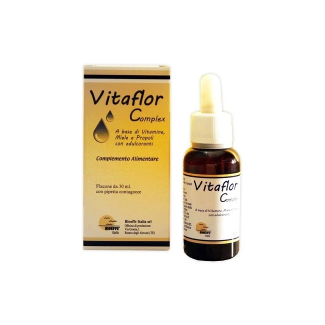 Bioeffe Vitaflor Complex è composto da un'accurata combinazione di vitamine del gruppo B, Vitamina C, Vitamina E, Vitamina A, Vitamina D3, Biotina, Miele e Propoli. Ogni flacone da 30 ml è dotato di pipetta contagocce per una dosatura precisa.