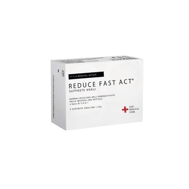 Le supposte Reduce Fast Act sono indicate per gestire stati infiammatori della mucosa anale e per normalizzare l'iperattività acuta della mucosa. Sono inoltre utili in caso di sofferenza anale indotta da ragadi, stipsi con sforzi alla defecazione, traumi, ipertono dello sfintere e irritazioni causate da manovre strumentali o agenti chimici.Caratteristiche