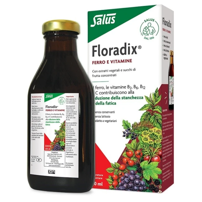 Floradix è formulato con ferro da gluconato ferroso, una forma altamente assorbibile, ed è arricchito con estratti di erbe e succhi di frutta concentrati, che ne rendono il sapore gradevole e facilmente assimilabile.Adatto per