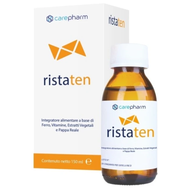 L’estratto di acerola svolge azione di sostegno e ricostituente aiutando le naturali difese dell’organismo; il ferro, il folato e la vitamina B12 contribuiscono alla normale formazione dei globuli rossi e al normale funzionamento del sistema immunitario. Le vitamine del gruppo B (B12, niacina, B2 e la B6) e la vitamina C favoriscono il normale funzionamento del sistema nervoso; quest’ultima inoltre, favorisce l’assorbimento del ferro. Il complesso vitaminico e il ferro presenti in Ristaten contribuiscono alla riduzione della stanchezza e dell’affaticamento. La formulazione è arricchita con Ppappa reale.