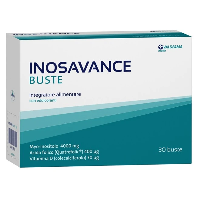 Ogni busta di Valderma Inosavance contiene: - Myo-inositolo - Acido folico under forma di 5-metiltetraidrofolato - Vitamina D Disponibile con un gusto rinfrescante al pompelmo, si presenta in un formato pratico in buste.Adatto per